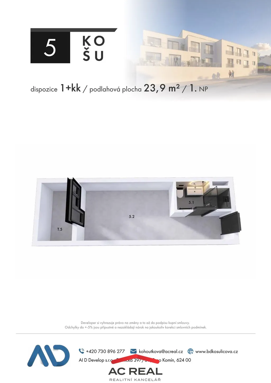Představujeme vám moderní byt 1+kk s terasou v novostavbě rezidenčního projektu KOŠU, který přináší komfortní bydlení s důrazem na kvalitu, technologie a úsporný provoz. Projekt se nachází v dynamicky se rozvíjející lokalitě Brno – Horní Heršpice, s výbornou dostupností do centra i ke klíčovým pracovním a vzdělávacím místům.