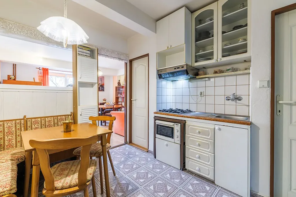 Vytápění je zajištěno dálkovým rozvodem. Ohřev teplé vody bojler.