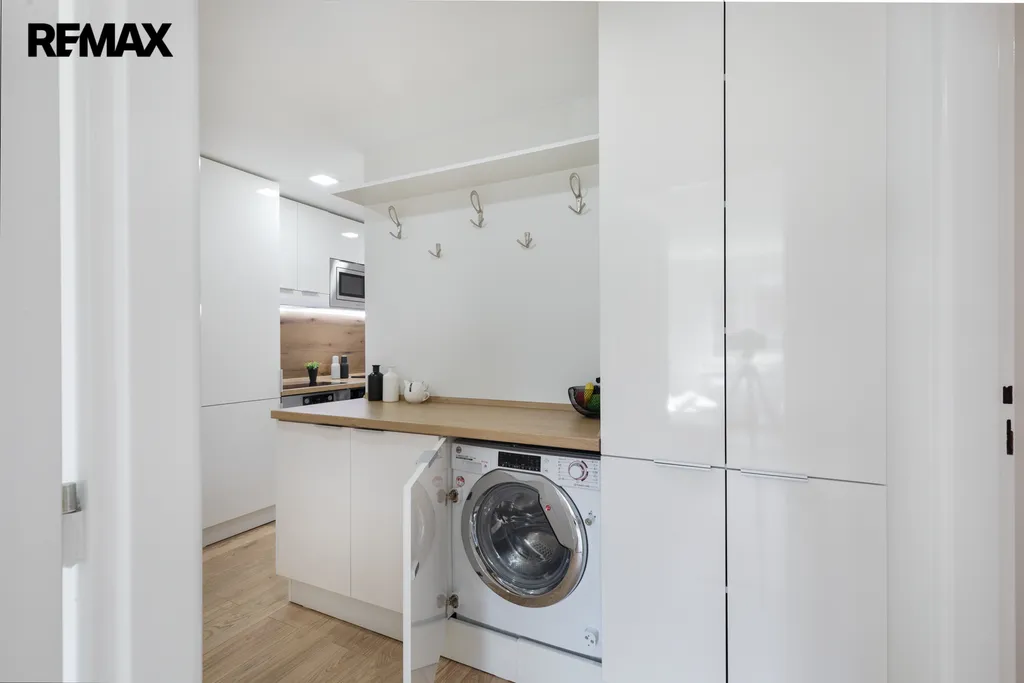 ✅ Kuchyňská linka na míru s vestavnými spotřebiči: lednice, indukce, el.trouba, MW trouba, plně integrovaná myčka š. 45 cm, digestoř s odtahem, pračka se sušičkou pod deskou v lince, potravinová skříň na míru, dostatek úložného místa