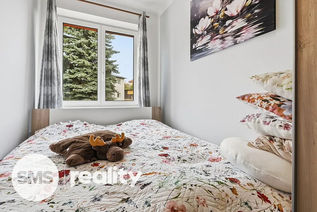 Dispozičně byt nabízí tři samostatné pokoje, kuchyň, koupelnu, samostatné WC a vstupní halu. Celkové řešení je velmi praktické a poskytuje dostatek prostoru pro pohodlné bydlení.