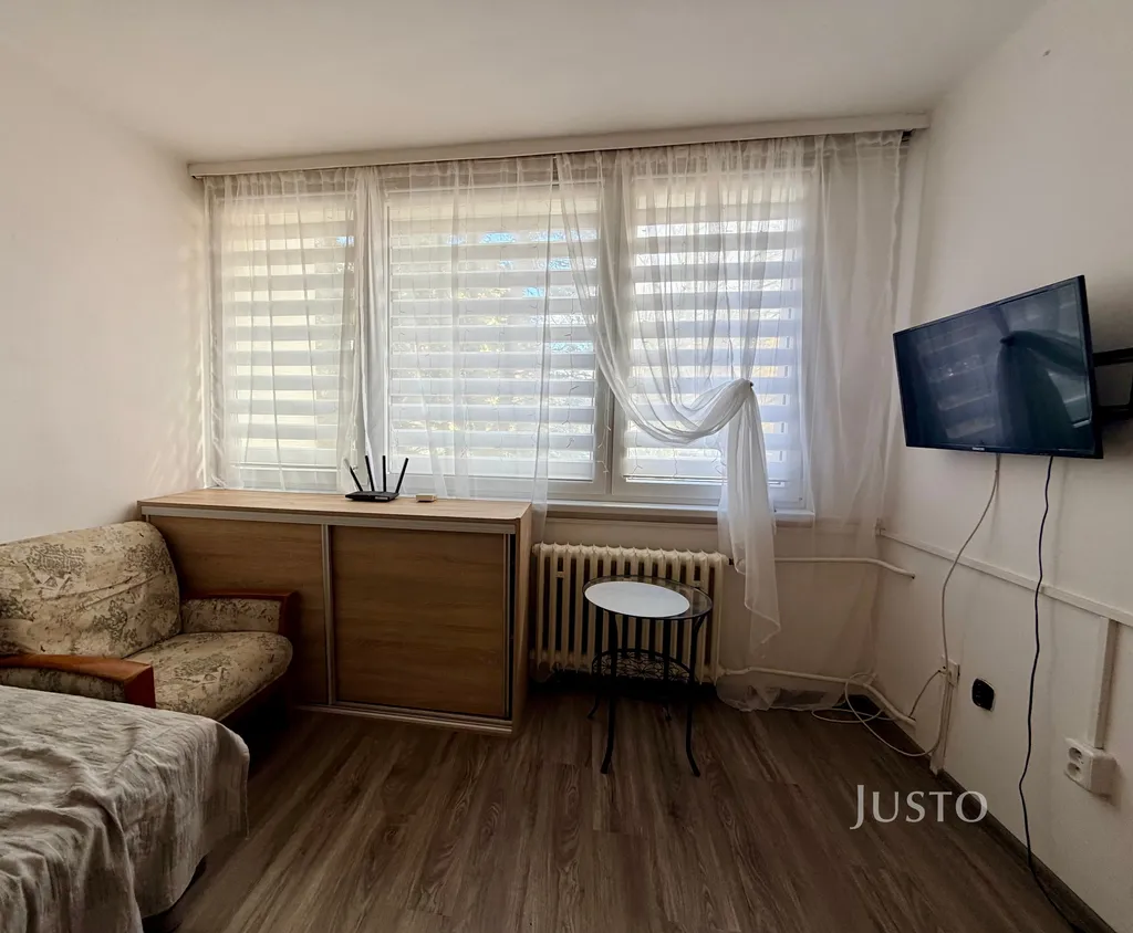 Byt je po rekonstrukci a nabízí světlý interiér s velkými plastovými okny, která zajišťují dostatek denního světla. Dispozice zahrnuje samostatný pokoj, kuchyň s jídelním koutem, koupelnu se sprchovým koutem a toaletou, předsíň a sklep. Součástí vybavení je kuchyňská linka se spotřebiči (lednice, mikrovlnná trouba, elektrická varná deska), pračka, televize a nábytek včetně postele, skříní a jídelního stolu. Byt je připraven k okamžitému nastěhování.