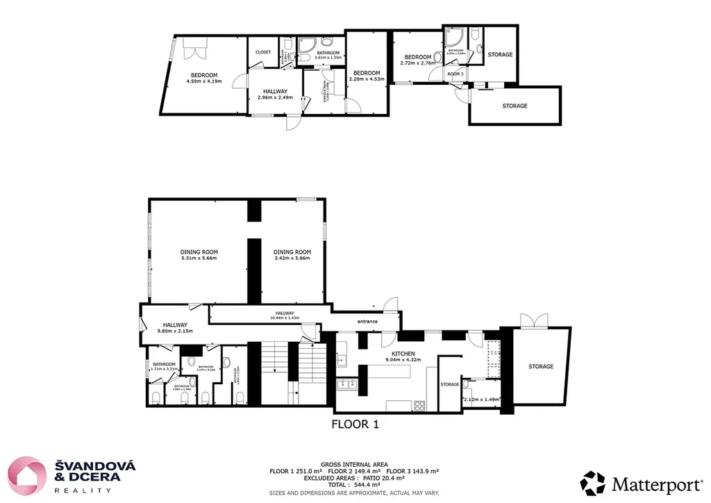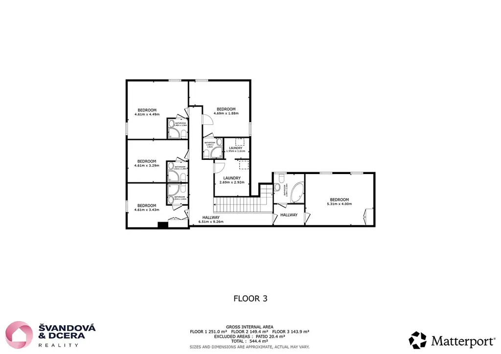 ✅Hlavní budova -> 2 hotelové byty, 5 dvoulůžkových pokojů s vlastní sociálkou
