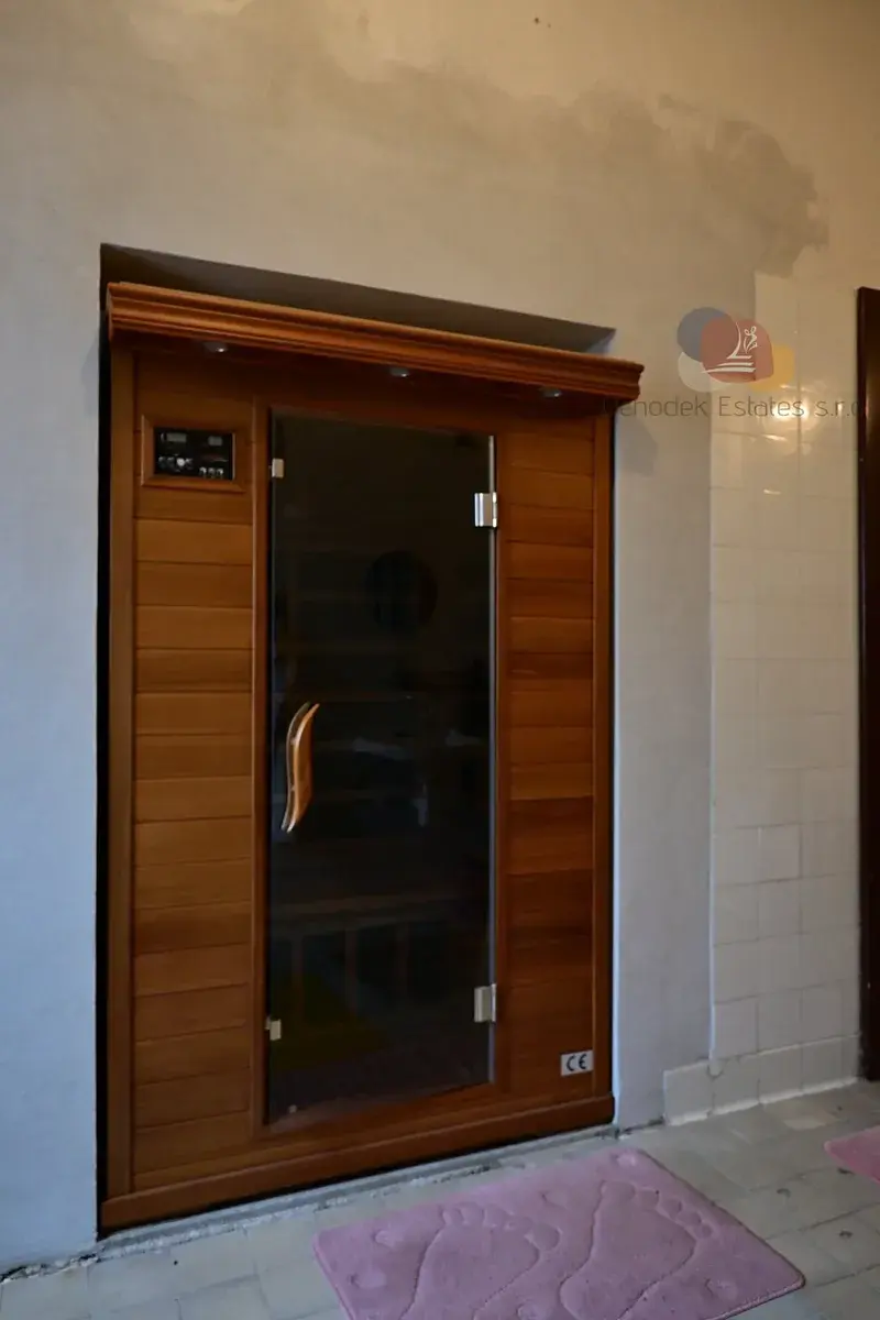 Suterén domu o ploše cca 300 m2, jehož součástí je i garáž, nabídne dostatek prostoru pro uložení různého vybavení či přebudování dle vašich představ. V kotelně se stále nalézá původní kotel na koks. A nemusíte se bát energetické náročnosti, protože tu je moderní bateriové uložiště k solární elektrárně, která je šikovně umístěná na střeše domu tak, aby nijak nenarušovala vzhled tohoto architektonického skvostu.