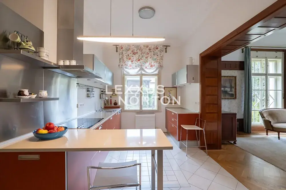 Hlavní vila s užitnou plochou 382 m² a obytnou půdou o velikosti 100 m² byla postavena v neoklasicistním stylu a dodnes si zachovala harmonické proporce, symetrii i cenné architektonické detaily. V letech 2004–2006 prošla kompletní restaurátorskou rekonstrukcí, provedenou s maximálním respektem k původnímu charakteru stavby. Obnoveny byly původní dřevěné obklady, štuky, podlahy i kamenické prvky, díky čemuž vila dnes nabízí autentický historický výraz v kombinaci s komfortem moderního bydlení.