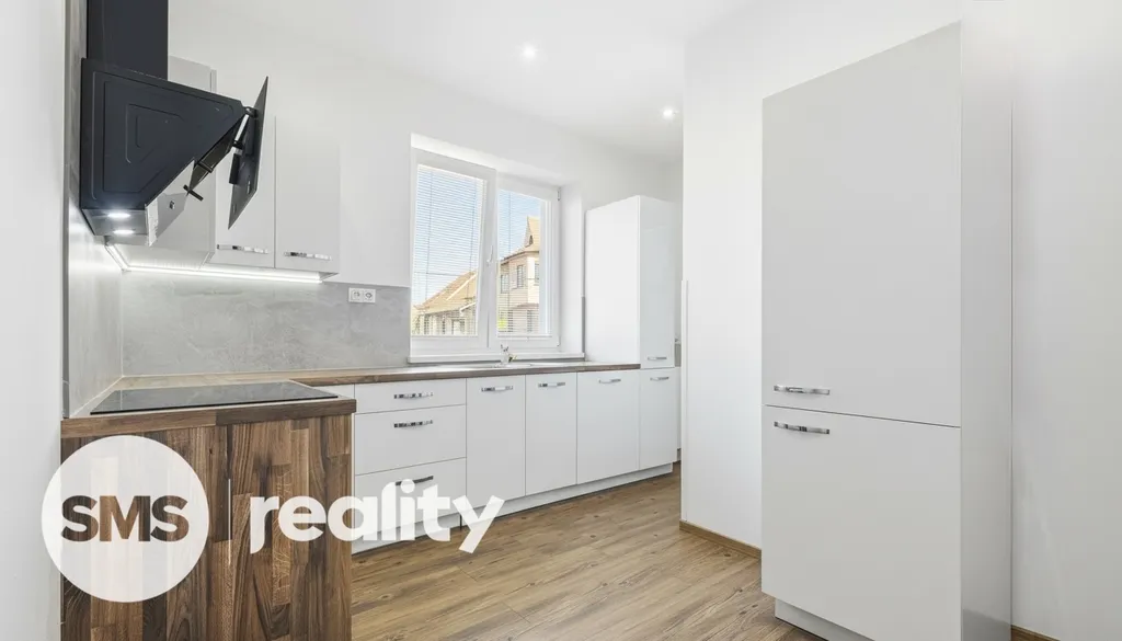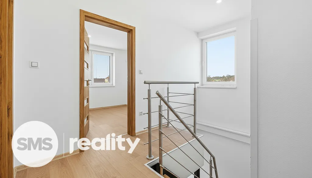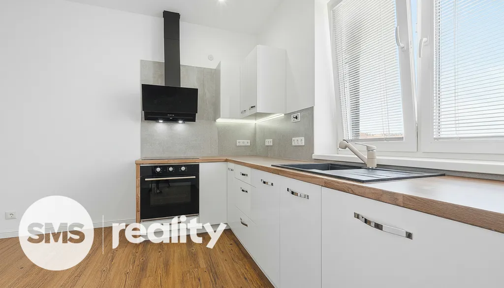 Ve spodním patře je umístěna moderní kuchyně vybavená vestavěnými spotřebiči (indukční deska, elektrická trouba, digestoř, lednice, myčka) a obývací pokoj, ze kterého vede schodiště do patra. Horní podlaží tvoří tři samostatné neprůchozí pokoje, šatna, koupelna a oddělená toaleta. K bytu náleží také balkon.