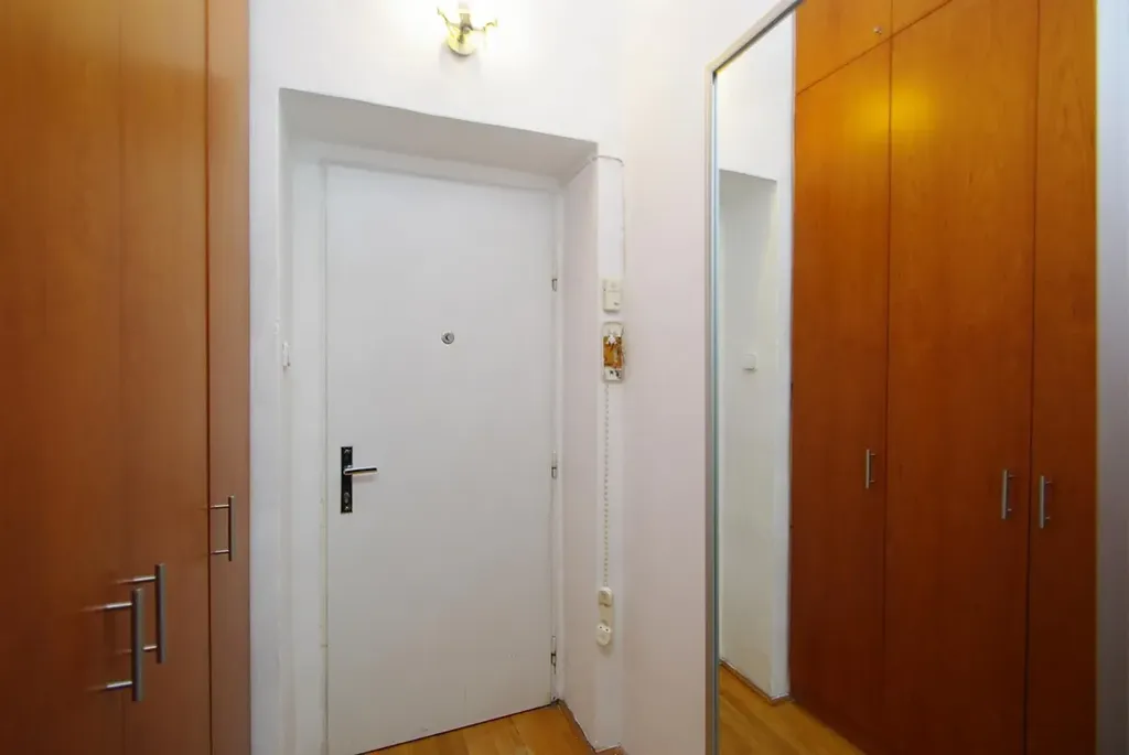 Kompozice bytu nabízí vstupní předsíň s vestavěnými skříněmi, obývací pokoj s moderním kuchyňským koutem, mezichodbičku se vstupem do prostorné ložnice se šatní skříní. Kuchyň je vybavena vestavěnými spotřebiči, (trouba, sklo keramická varná deska, myčka na nádobí, lednice s mrazákem a rychlovarná konvice). Dále koupelna je vybavena sprchovým koutem, umyvadlem a pračkou, toaleta je oddělená. Z ložnice je přímý vstup na balkón, který směřuje do ulice. Na podlahách jsou dřevěné parkety.