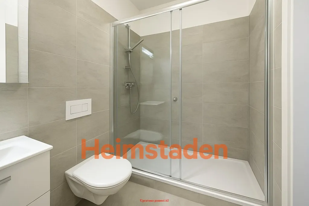 Koupelna bude zcela nová a řešena ve vyšším standardu – vana i sprchový kout, závěsné WC, koupelnová sestava se skříňkou a velkoformátové obklady v moderním šedém dekoru. Samostatné WC je samozřejmostí.
