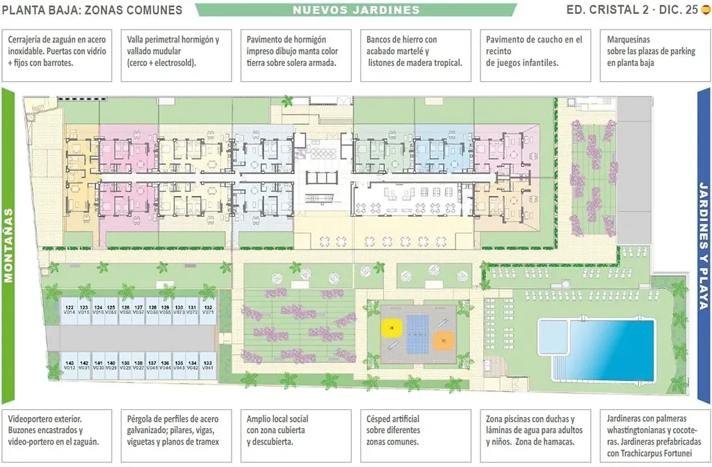 Společné prostory: Vnitřní a venkovní společenské salonky a otevřené pěší zóny.