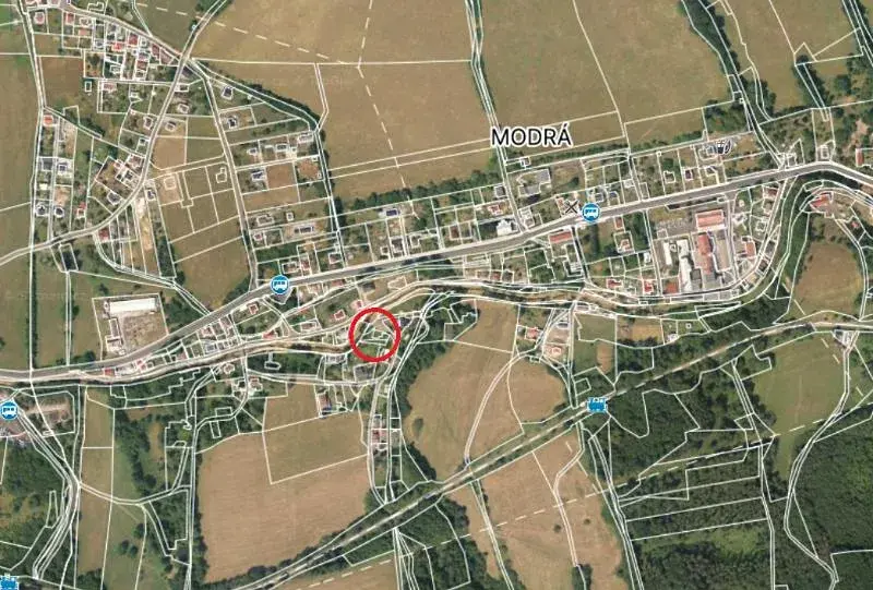 Jedná se o prodej souboru nelesních pozemků, které leží v intravilánu obce mezi rodinnými domy a zahradami, u Jílovského potoka a mostku přes něj, v obci Modrá. V souboru je prodáván pozemek p.č. 532/1, ostatní plocha, a dále ideální polovina pozemku p.č. st. 83, zastavěná plocha a nádvoří, a ideální polovina pozemku p.č. 532/2.