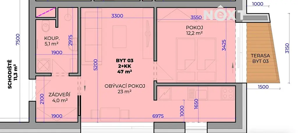 Nabízíme k prodeji bytovou jednotku B03 o dispozici 2+kk v novém developerském projektu ve Fryštáku – lokalita Potoky, ulice Osvobození V. Byt se nachází ve 2. nadzemním podlaží, podlahová plocha je 44,25 m². Součástí bytu je také terasa o velikosti 4,00 m².