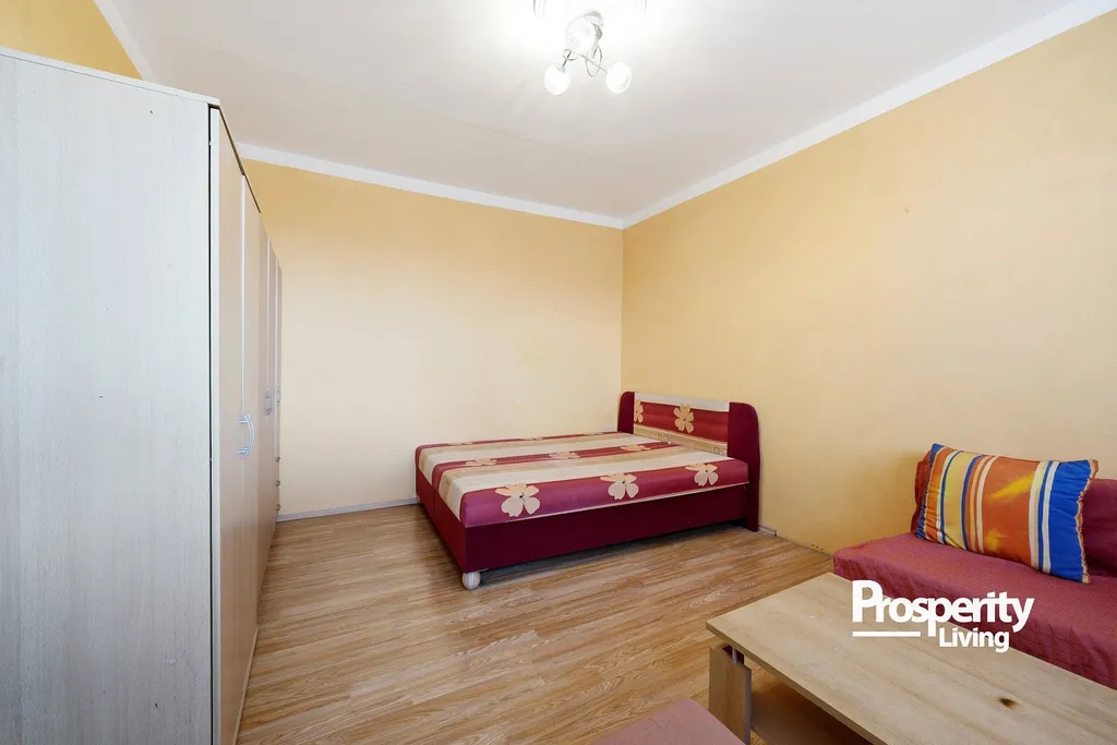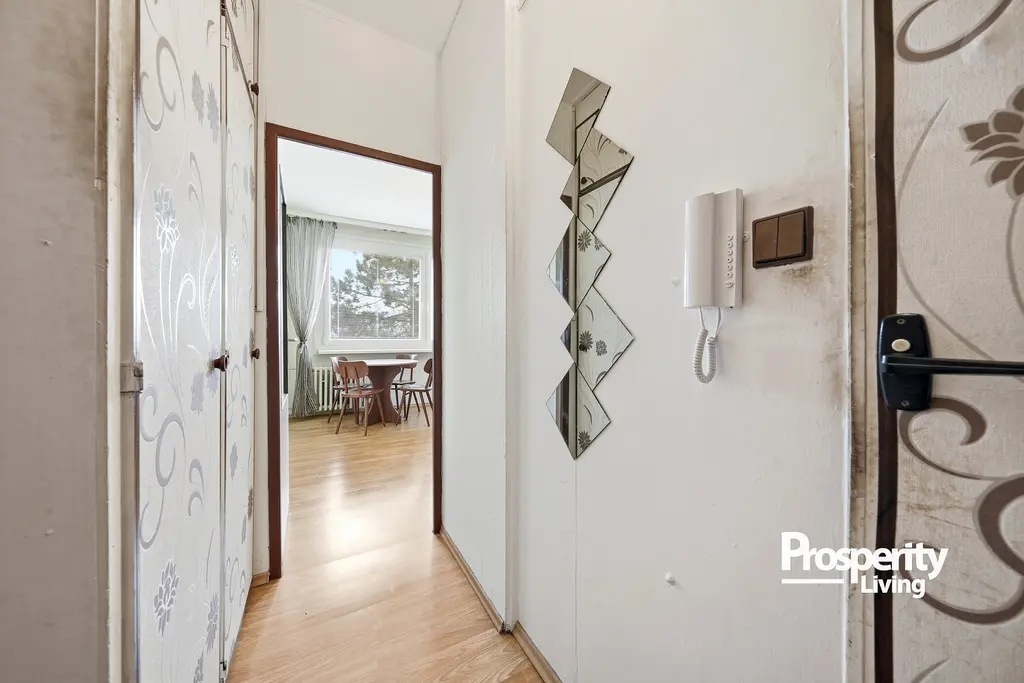 Dispozice bytu tvoří samostatná kuchyně a obytný pokoj, což zajišťuje praktické a přehledné uspořádání vhodné jak pro vlastní bydlení, tak i pro pronájem.