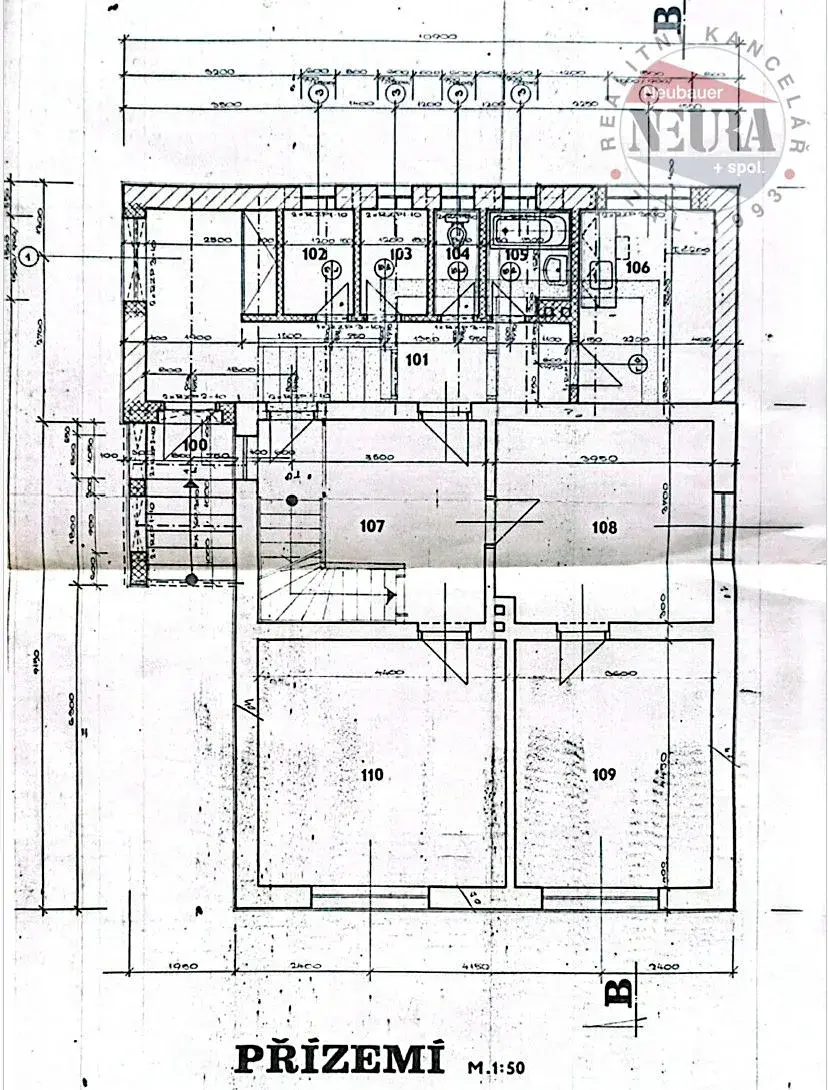 přízemí: byt 3+1 (obývací pokoj, kuchyň, dvě ložnice, koupelna, samostatné WC a komora),