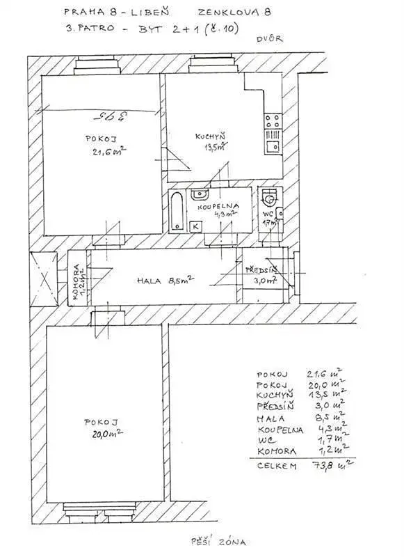 Byt po rekonstrukci s neprůchozími pokoji. Dva dvacetimetrové pokoje se samostatnými vstupy, navíc oddělené chodbou, a prostorná kuchyně s jídelní nebo obývací částí, komora, hala, koupelna a samostatné WC. Byt je po celkové renovaci a není zařízen nábytkem. 3.patro cihlového domu bez výtahu. 50 m od vstupu do metra B Palmovka. Nájem 21.000,Kč + 850,Kč za 1. osobu záloha na služby včetně vody a 100,Kč za byt (čištění komínů)+ vlastní spotřeba bytové elektřiny a plynu. Jistota 25tis. Kč, odměna RK. Internet O2 i UPC zaveden. Byt je k dispozici od 1. června 2026. Minimální předpokládaná doba nájmu 2 roky. Prohlídky možné nyní po předchozí dohodě. Byt je ideální pro pár (ne příliš vhodný pro spolubydlení např. studentů).