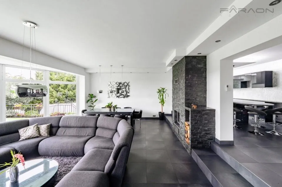 Prodej prostorné rodinné vily v malebném prostředí Brdských lesů v Mníšku pod Brdy nabízí kombinaci moderního designu, komfortu a klidného prostředí na pečlivě upraveném a oploceném pozemku o velikosti 1 180 m. Dvoupodlažní zděná a zateplená vila o užitné ploše 346 m byla postavena v roce 2012 a poskytuje panoramatické výhledy do zalesněné krajiny. Přestože je zastávka autobusu vzdálena jen několik minut chůze, lokalita zajišťuje maximální soukromí a klid.
