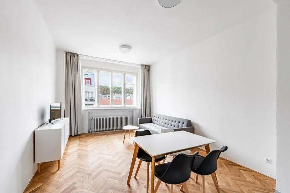 Krásný byt 2+kk, 69 m2 s balkonem a sklepem, po rekonstrukci, v 6. podlaží zrekonstruované historické sedmipodlažní budovy s výtahem, kousek od stanice metra Křižíkova v nové a rychle se rozvíjející čtvrti Karlín, Praha 8.