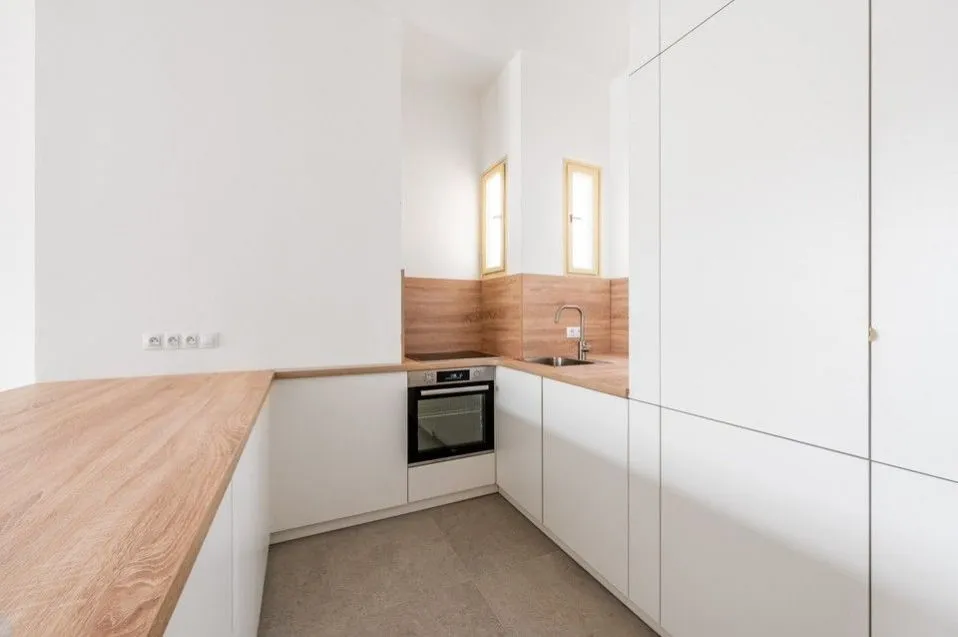 Byt je nadstandardně moderně vybaven všemi spotřebiči a stylovým nábytkem ve skandinávském designu. Na podlaze jsou dřevěné parkety.