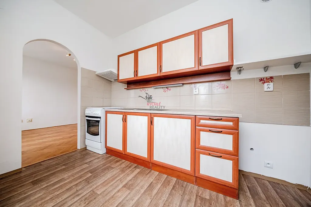 Na chodbě a v kuchyni je na podlaze PVC, v pokojích původní parkety a v koupelně a wc dlažba.