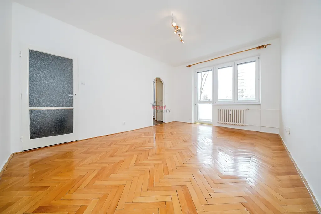 Byt je čistě bíle vymalován a je připraven k nastěhování.