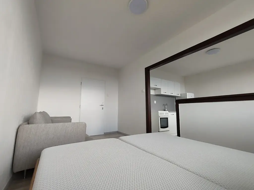 Pronajmu byt 1+1 s prostornou lodžií. Byt momentálně prochází rekonstrukcí, ale je stejné dispozice jako byt na fotografiích. Mohu jej vybavit nábytkem, který nevidíte na fotografiích - 2 postele, stůl, židle a pohovku. Byt můžu dovybavit třeba o pračku.
