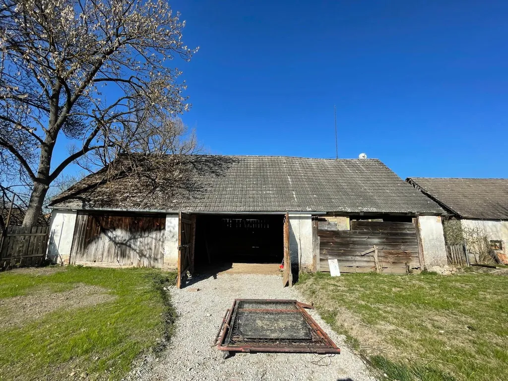Na pozemku se nachází stodola ( 151 m2 ), která skýtá možnost velkého skladovacího prostoru. Vedle stodoly je hromada přírodního kamene čekajícího na zpracování a je též zahrnuta v ceně pozemku. Pro potřeby dělníků majitel zajistí dočasné hygienické a obytné zázemí. Součástí prodeje je 1/2 podíl pozemku, na kterém je přístupová zpevněná cesta.