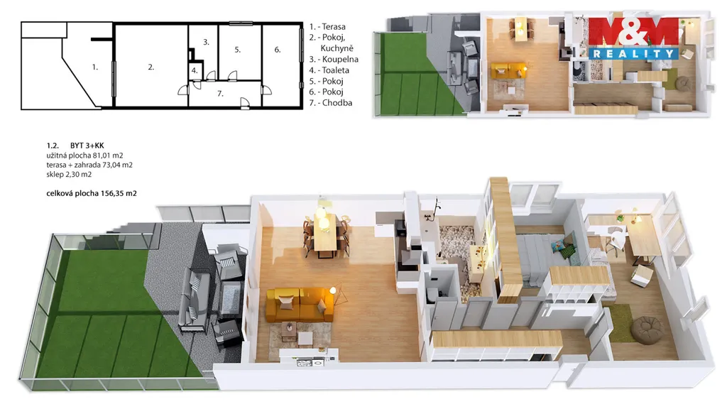 JEDINEČNÝ BYT 3+KK S TERASOU A ZAHRADOU! Byty MB Husova se nachází v centru města, jen pár kroků od parku Výstaviště. Tento byt má celkovou plochu 156,35 m2 a nabízí vlastní soukromou terasu se zahradou, která nabízí dostatek prostoru pro posezení, grilování i odpočinek. Dům je postaven z nadstandardních materiálů a výhodou je pouze jeden soused na patře. Byt vyniká i svou energetickou nezávislostí - je vybaven vlastním plynovým kotlem, díky kterému máte plnou kontrolu nad spotřebou i náklady. Celý dům splňuje energetickou třídu A, což zajišťuje nízké provozní výdaje a maximální úspornost. K bytu náleží i sklep a pro maximální pohodlí je možné dokoupit kryté gážové stání přímo v objektu za cenu 650.000,-Kč. S financováním Vám pomůže naše hypoteční specialistka – nyní stačí 12 % z kupní ceny, zbytek až po kolaudaci. Moderní a úsporné bydlení - to je příležitost, která čeká právě na vás!