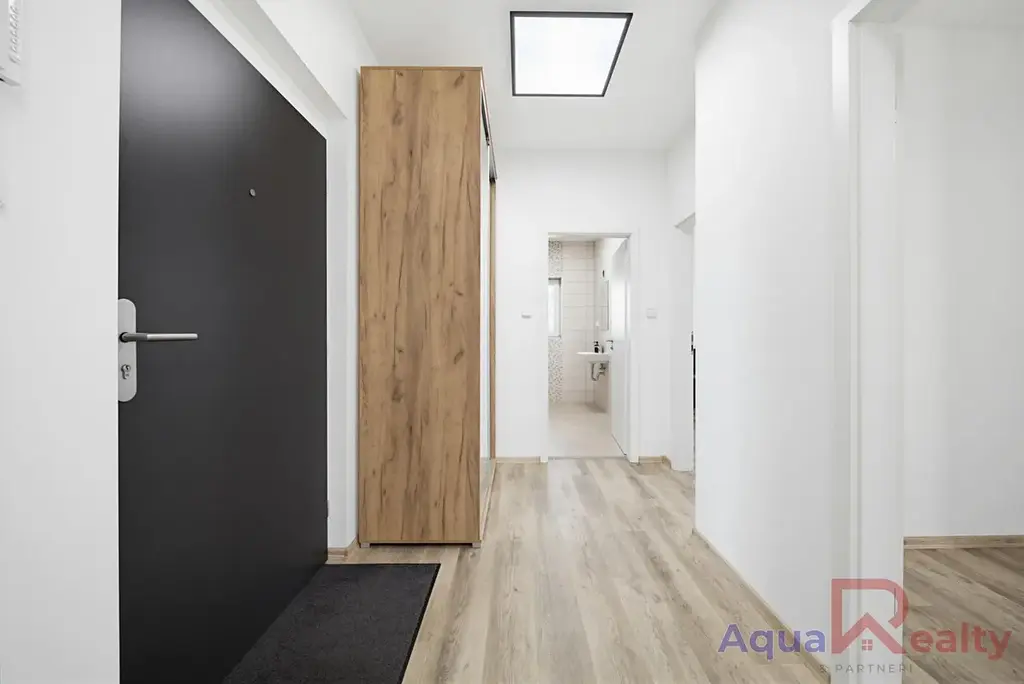 Byt dále nabízí prostornou ložnici s přímým vstupem na balkon, odkud se otevírá krásný výhled do okolní krajiny. Další pokoj lze využít jako dětský pokoj, pracovnu či pokoj pro hosty. Všechny místnosti jsou laděny do světlých tónů a sjednoceny kvalitní vinylovou podlahou. Vstupní chodba disponuje praktickou vestavnou skříní, která nabízí dostatek úložného prostoru.