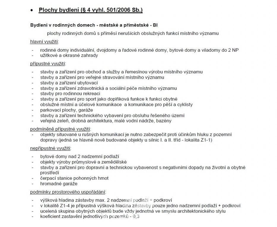 Dle územního plánu je pozemek určen k výstavbě rodinného domu a je součástí připravované obytné lokality.