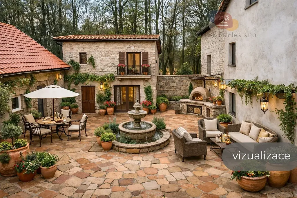 Představte si: Ranní káva na nádvoří, které vypadá jako vystřižené z italského filmu. Šumění potoka místo ranních zpráv. A místo nudného souseda elektrické vedení, které vám aspoň připomíná, že jste stále v civilizaci.