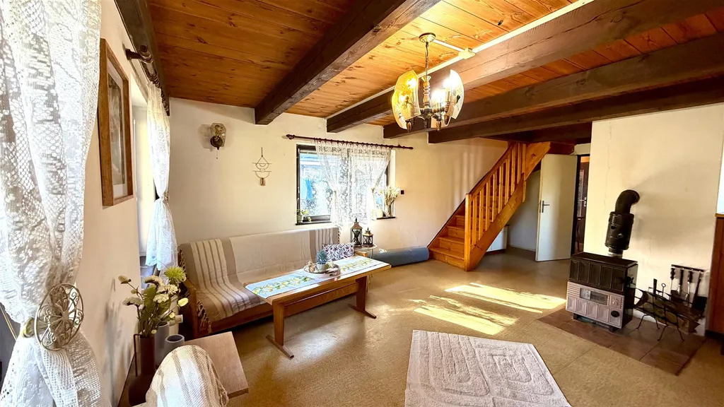 Vytápění domu je zajištěno kotlem na tuhá paliva a dále je možné využít krbových kamen, které snadno vytopí celý objekt. Teplá voda je dodávána bojlerem.