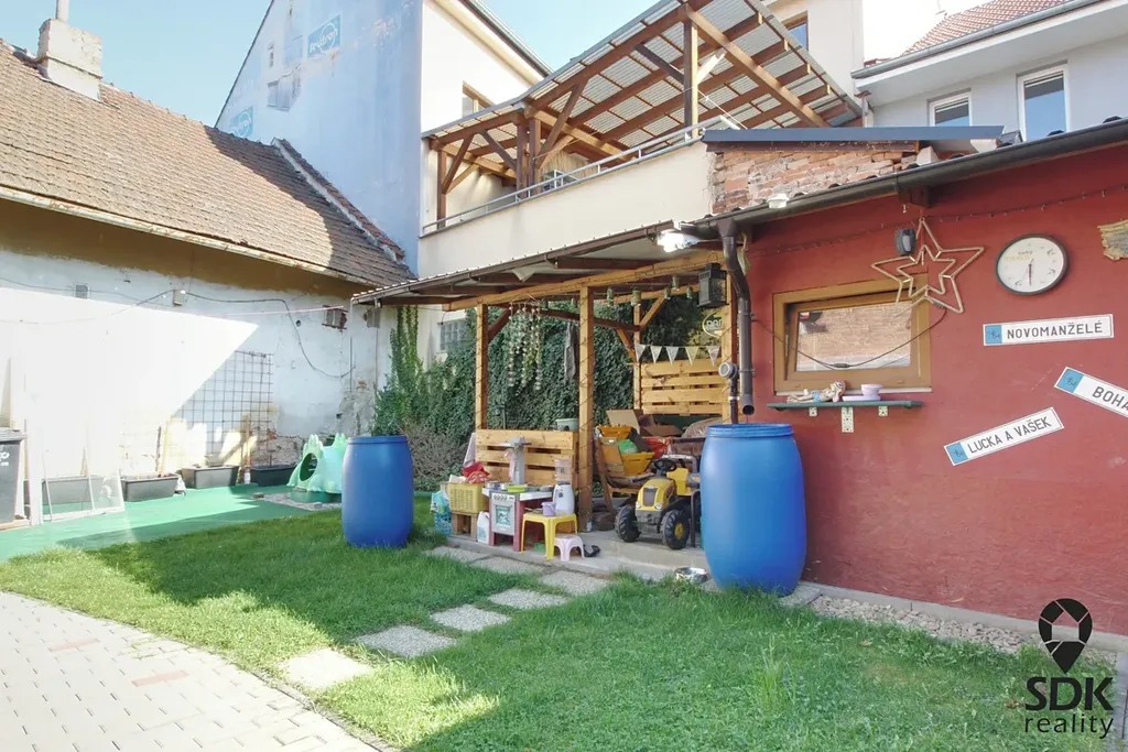 Velkým benefitem je zahrada o velikosti 100 m², která je ve společném vlastnictví domu, avšak v praxi je využívána převážně majiteli tohoto bytu. Na zahradě se nachází zastřešené posezení s přivedenou elektřinou a vodou, ideální pro relaxaci nebo grilování.