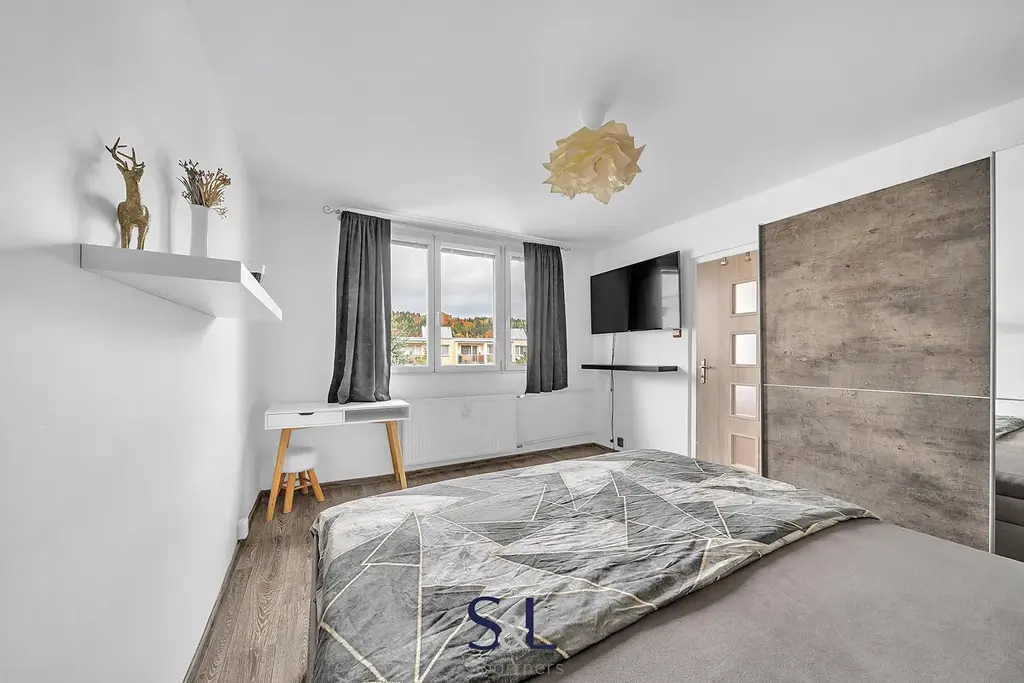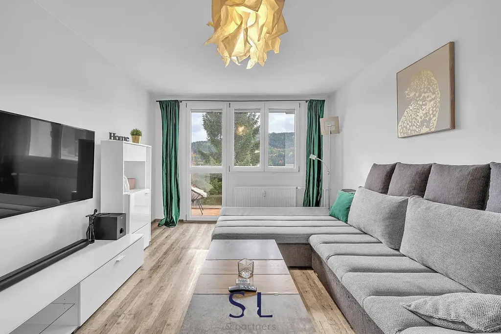 Byt o celkové ploše 55 m² je ideální volbou pro jednotlivce, pár nebo mladou rodinu. Vše je připraveno k okamžitému nastěhování – kuchyň je plně vybavená včetně spotřebičů, v koupelně najdete vanu i pračku, WC je samostatné. Byt má dva neprůchozí pokoje, přičemž z jednoho z nich je přímý vstup na lodžii s posezením. K bytu náleží také sklep o velikosti 3 m².