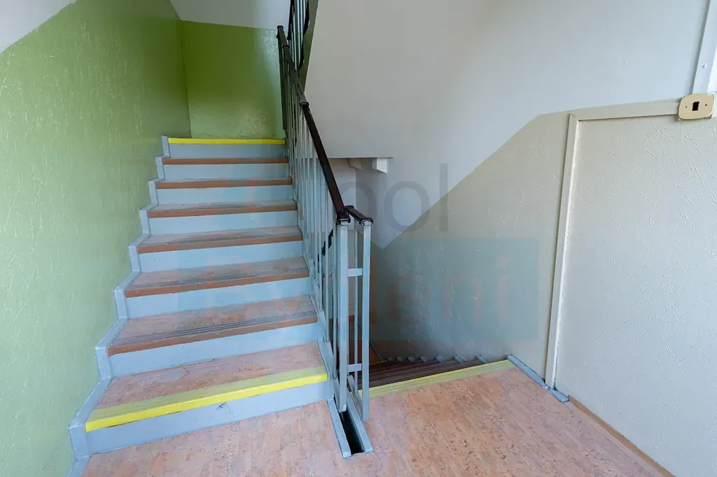 V obytné místnosti je položena plovoucí podlaha, v koupelně je dlažba. Sklepní kóje je umístěna v 1. nadzemním podlaží domu.