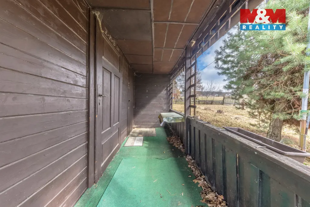 Na zahradě se nachází dřevěná chatka, vhodná k rekonstrukci dle vlastních představ. Dále se zde nachází starší skleník, udírna, ohniště, uzamykatelná bouda na uskladnění nářadí, suché WC.