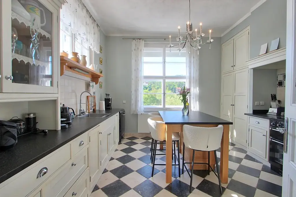 Dispozice impozantní villy 5+1 je doplněna samostatným ateliérem (cca 40 m²) se zimní zahradou, kuchyňkou a koupelnou, což nabízí skvělé možnosti pro hosty, domácí kancelář či kreativní práci. Interiér je zařízen v duchu anglického stylu s autentickým nábytkem a působí dojmem historického venkovského sídla. Vila prošla citlivou rekonstrukcí v letech 2009–2023 – zateplení, nová okna s izolačními skly, nové rozvody, tepelné čerpadlo LG, nově instalované ústřední vytápění, kachlová kamna i podlahové topení v koupelnách a ateliéru. O bezpečnost se starají předokení rolety. Dům má velice nízké provozní náklady a je v perfektním stavu. Využít ho můžete pro celoroční, trvalé bydlení vaší rodiny. Nebo jako letní, čí víkendové sídlo. Samozřejmě s ohledem na polohu přímo u řeky Sázavy, může být finančně zajímavý i pronájmy villy. Neboť pozemek navazuje na volně přístupný les, k řece vede malebná zahrada s molem a loďkou – ideální pro rybáře, vodáky, cyklisty a milovníky přírody. Výhled na řeku dodává tomuto místu kouzlo, které jinde nenajdete. A můžete se jím kochat hned z několika teras, která villa nabízí, úchvatný pohled ...