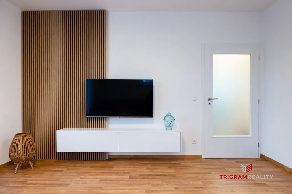 Byt zaujme svým promyšleným dispozičním řešením a vzdušností. Dominantou je vkusně zařízený obývací pokoj s kuchyňským koutem a přímým vstupem na balkon orientovaný na jihozápad, který nabízí příjemné odpolední světlo i klidné posezení.