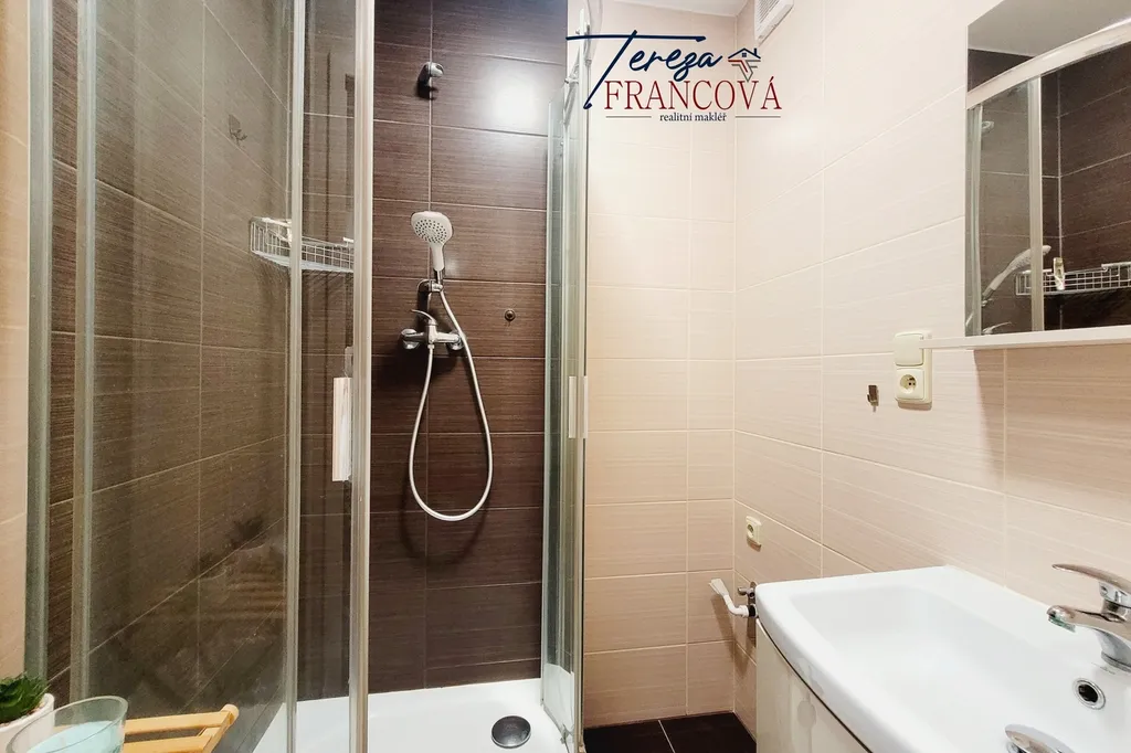 Ložnice je dostatečně prostorná a umožňuje kromě pohodlného spaní i umístění dalších skříní nebo pracovního koutku. Koupelna je vybavena sprchovým koutem a nabízí prostor pro pračku i sušičku, WC je samostatné.