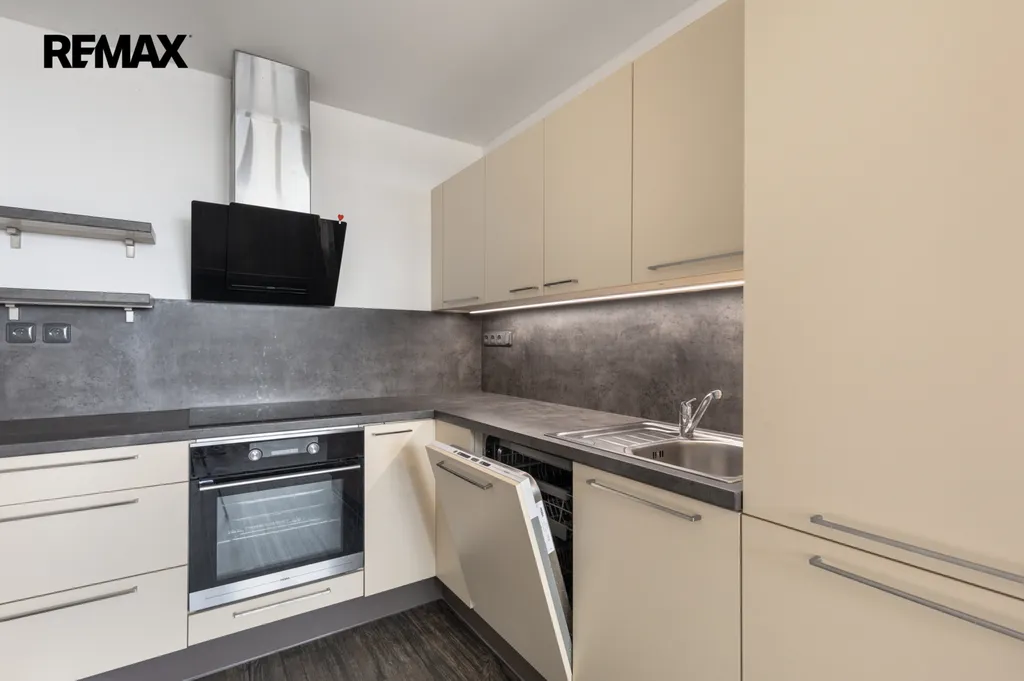 Byt sestává ze vstupní chodby s prostornou šatní skříní, ze samostatné ložnice s dostatečným prostorem pro manželskou postel a skříň, vkusně zhotovené koupelny s rozměrným sprchovým koutem a z obývacího pokoje navazujícího na kuchyňský kout s moderní kuchyňskou linkou do tvaru L, která je vybavena vestavěnou myčkou a lednicí s mrazákem. Veškeré elektrospotřebiče jsou zánovní a plně funkční.