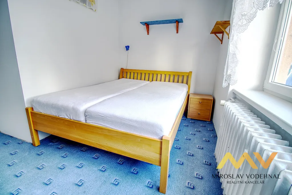 Byt je dispozičně řešen jako kuchyň se spíží, dva samostatné pokoje, koupelna s vanou, samostatné WC, předsíň a komora. Součástí vybavení je sedací souprava, jídelní stůl se židlemi, nová kuchyňská linka s plynovým sporákem, obývací stěna, manželská postel, šatní skříně, pracovní stůl, lednice, mikrovlnná trouba, pračka. Byt může být po dohodě vyklizen. K bytu náleží menší balkón 1 m2. Sklep není k dispozici.