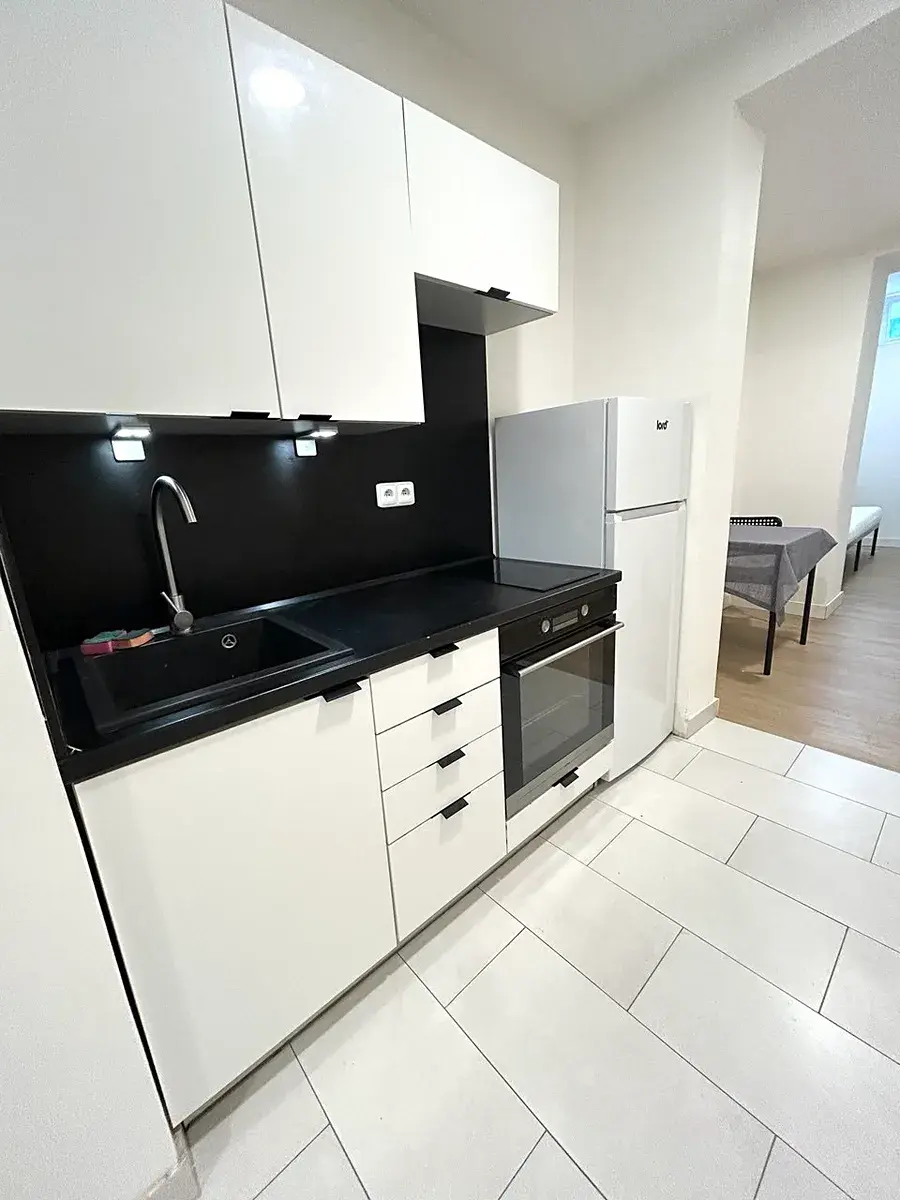 Byt je zařízený. Kuchyň je vybavená kuchyňskou linkou a elektrospotřebiči.