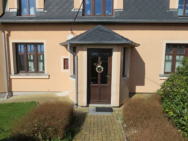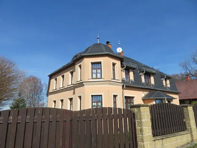 Fasáda domu je zateplená a opatřená barevným nátěrem. Objekt je částečně