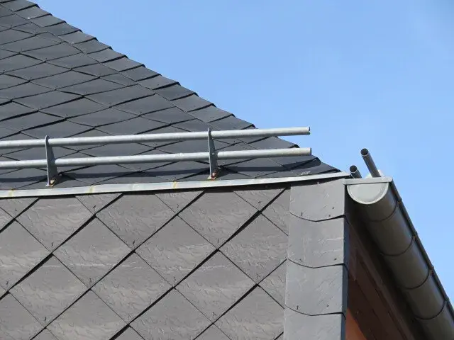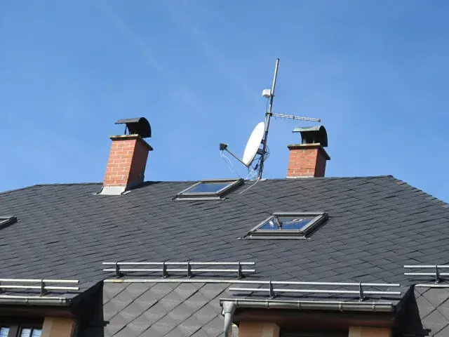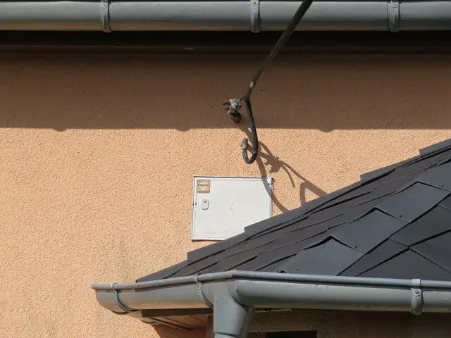 je mansardová s krytinou ze šablon, opatřená klempířskými prvky – žlaby