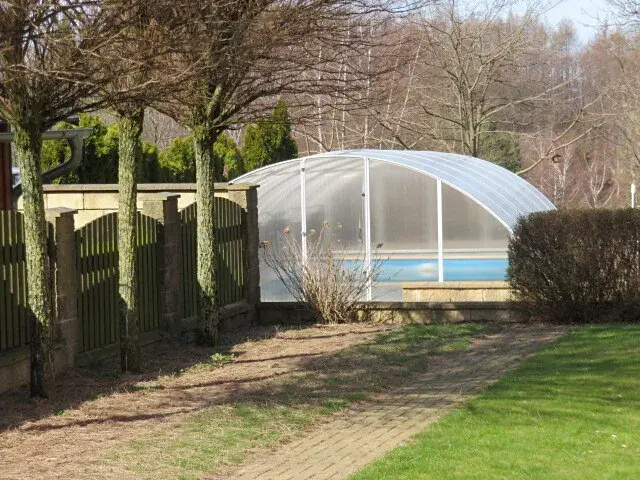 podsklepený, přičemž ve sklepních prostorách se nachází studna. Střecha
