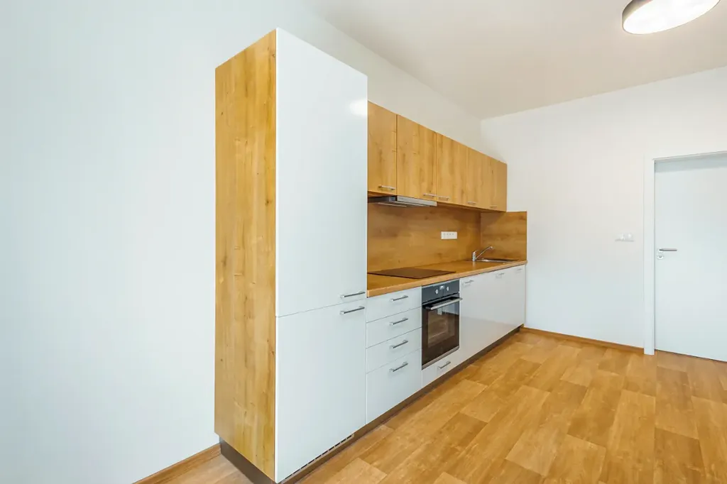 V bytě je předsíň, krásná koupelna s oknem (sprchový kout, umyvadlo, WC, otopný žebřík, místo pro pračku), útulná ložnice , obývací pokoj s moderní kuchyňskou linkou na míru. Kuchyň je plně vybavena elektrickými spotřebiči - el. trouba, myčka, sklokeramická varná deska, digestoř, vestavěná lednice s mrazákem, dřez. Z ložnice i obývacího pokoje je vstup na terasu.