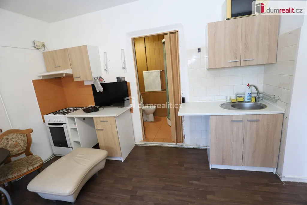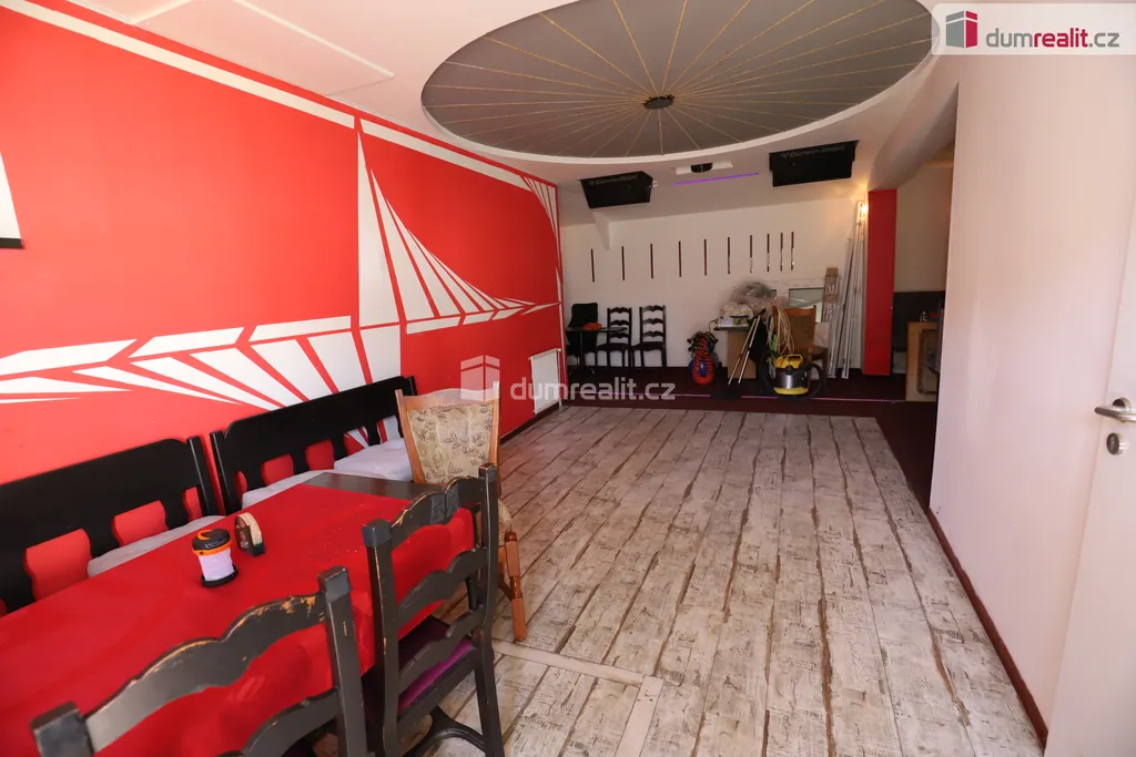 Dumrealit.cz Vám zprostředkuje koupi vícegeneračního atypického rodinného domu, který nabízí jak zázemí pro bydlení, tak podnikání a pronájem. Budova má celkem cca 330 m² užitné plochy, 5 vchodů, zahradu a dělí se na mezonetový byt 4+1, garsonku a nebytový prostor/restauraci/bar/obchod. Přibližný výčet a rozdělení plochy 330 m² je 50 m² sklep, 50 m² půda, 24 m² garsonka, 120 m² byt, restaurace 90 m². Každý prostor má své sociální zařízení. Začněme bytem 4+1, který má svůj samostatný vchod ze zahrady, na kterou vcházíme skrze velká příjezdová vrata z ulice. Byt 4+1 se skládá z předsíně, ložnice, toalety, po schodech nahoru vcházíme do patra, kde je prostorný obývací pokoj, ložnice rozdělená do dvou úrovní třemi schody, velkorysá kuchyně s jídelnou, koupelna s rohovou vanou a druhou toaletou a místem na pračku a sušičku. U kuchyně je navíc prostorný balkon, který je též přístupný po samostatném schodišti ze zahrady a má vlastně svůj vlastní vchod opatřený mříží. Z balkonu je možné se dostat na půdu, která kopíruje velkou část plochy domu a poskytuje hodně úložného prostoru. Zpět na zahradu odkud se dostaneme do menšího baru, kde byla i diskotéka a posezení, bar, další místnost, úložná komora a sociální zázemí. Toalety jsou jak hned u vchodu ze zahrady tak u druhého vchodu z ulice. Obojí toalety jsou pánské i dámské. Prostor by se dal eventuálně ještě rozdělit na případně třeba obchod přístupný z ulice a bytovou jednotku přístupnou ze zahrady. Nyní je vlastně tento prostor průchozí z ulice až na zahradu. Dále je zde ještě další samostatná garsonka, má svůj vchod vedle vrat na zahradu, byla vytvořena z garáže, garáž by se dala obnovit. Garsonka má svou sprchu a toaletu. Centrální zahrada má rozlohu 65 m². Vytápění domu zajišťuje dva roky starý kondenzační kotel, v celém domě jsou radiátory, navíc v kuchyni a koupelně bytu 4+1 je podlahové vytápění. Okna jsou některá nová plastová, fasáda domu je v některých místech zateplená, elektroinstalace je částečně již v mědi, vodoinstalace a odpady jsou také částečně již v plastu. Střecha domu je plechová, celý dům je podsklepený, zde je dílna, místnost s kotlem a další technická/úložná místnost. Dům se nachází v Habartově na klidném místě, kde je zároveň možné dobře zaparkovat. V obci je veškerá občanská vybavenost včetně školy, školky, městského úřadu, Tesca, je zde in-line dráha a koupaliště Boden, jezero Medard, města Sokolov i Karlovy Vary jsou vzdáleny cca 15 minut jízdy. Cena zahrnuje veškerý právní servis i provizi RK. Ev. číslo: 655373.