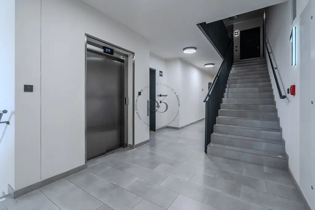 Nabízíme Vám k dlouhodobému pronájmu zcela nový byt o dispozici 2+kk nacházející se ve 1. patře novostavby s výtahem, o celkové výměře 43m2 a balkónem 7m2 v klidné a vyhledávané lokalitě Prahy 9 - Prosek. Byt je situován na západní stranu.