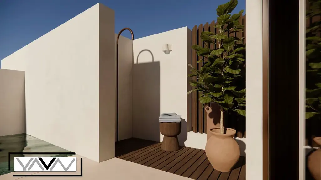 Velkým benefitem této nemovitosti je soukromý venkovní bazén o velikosti cca 13 m² a venkovní sprcha, které zajišťují maximální komfort a soukromí.
