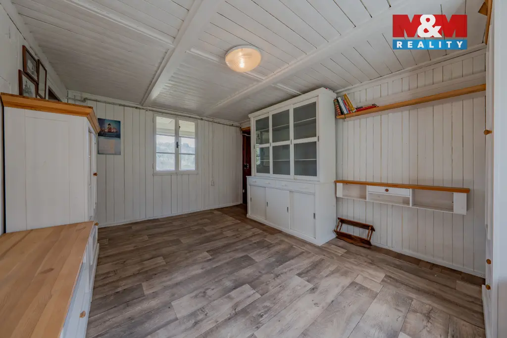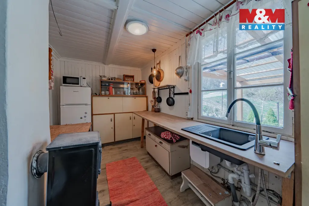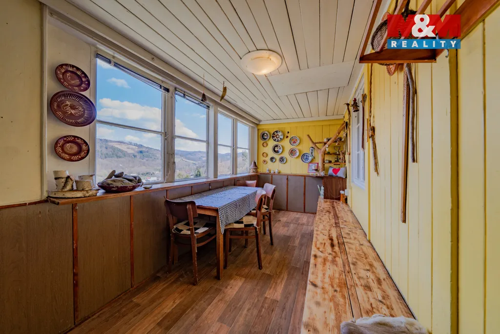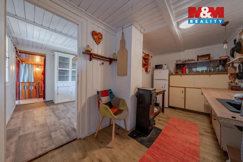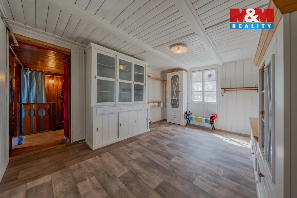 Nabízíme k prodeji dvoupodlažní zařízenou chatu 4+1 se svažitou zahradou o výměře 340 m2. Do chaty je přiveden elektrický proud a obecní vodovod, vytápění řešeno kamny na tuhá paliva, WC suché mimo chatu. Nachází se na polosamotě u lesa s výhledem do údolí řeky Bečvy. Doporučujeme prohlídku, více informací u makléře.