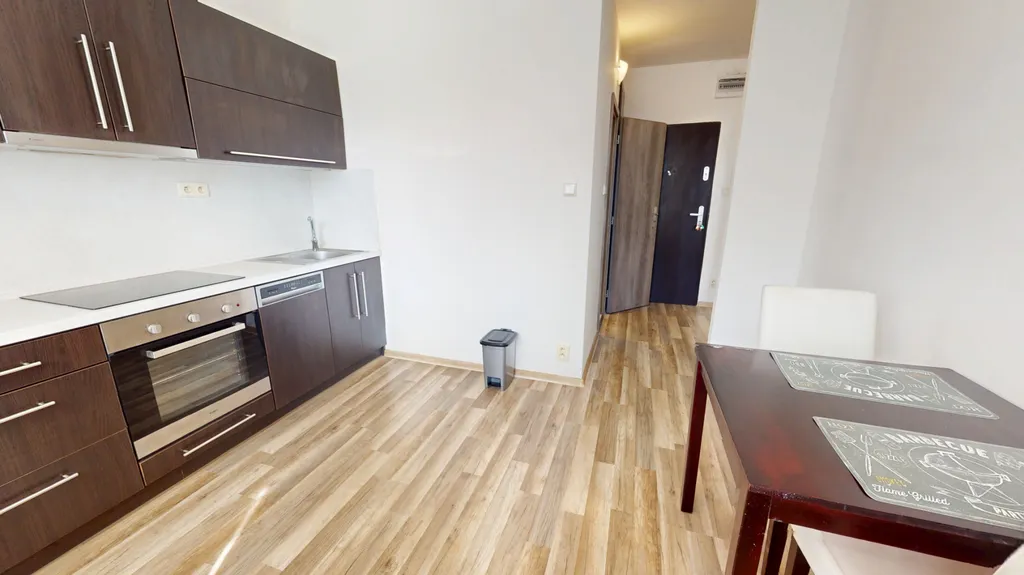 V bytě je plovoucí podlaha, koupelna je vybavena sprchovým koutem, koupelnovou skříňkou se zrcadlem a toaletou. Kuchyňská část disponuje varnou deskou, elektrickou troubou, vestavěnou lednicí s mrazákem, myčkou a digestoří.