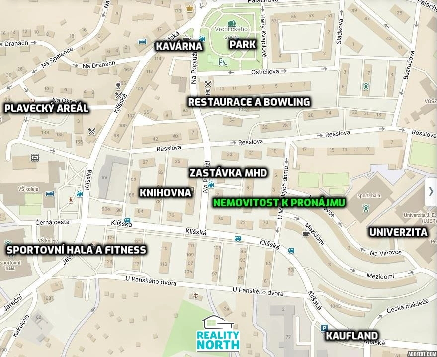 RealityNorth Vám zprostředkují pronájem bytu o dispozici 2+kk, který se nachází ve velmi vyhledávané a klidné lokalitě města Ústí nad Labem, Klíši, ulice Na Popluží.