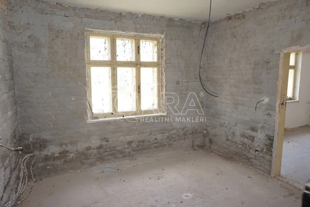 Nabízíme k prodeji rodinný dům určený ke kompletní rekonstrukci, která již započala vyklízecími a přípravnými pracemi a také částečně zhotovenou instalací elektřiny. Dům je rozdělen na dvě části rozdělené menším dvorem, které jsou v zadní části propojeny hospodářskou částí. Každá část by do budoucna šla používat samostatně například k pronájmu. Levá část domu sestává ze vstupní chodby a dvou obytných místností, dále vstupem na půdu pod sedlovou střechou a v zadní části místnostmi původně sloužícími jako chlévy, navazuje menší stodola s vraty do ulice. Pravá část je jedna obytná místnost s dalšími prostory na WC, koupelnu, případně opět půdní vestavbu. V této části je také malý kamenný sklep. Celkově se jedná o nemovitost v současném stavu neobyvatelnou, nicméně skýtající budoucímu majiteli prostor pro realizaci vlastních nápadů a přání. Financování Vám velice rádi zařídíme a zprostředkujeme.